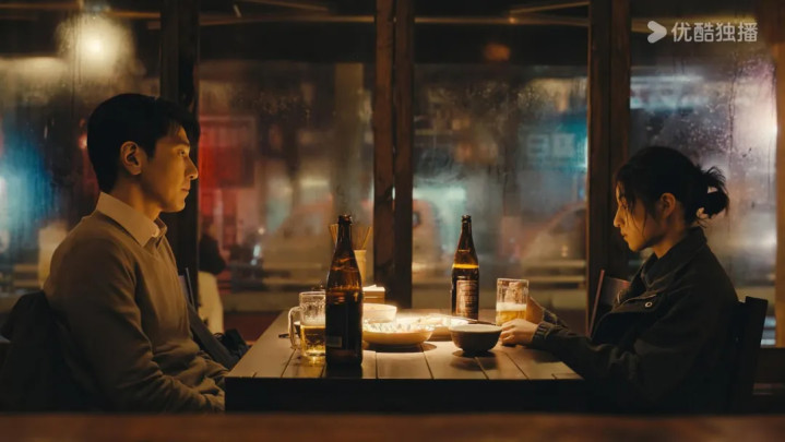 而转头到了男女主同行的街边小馆、路灯下,光线瞬间变得柔和暖黄。
