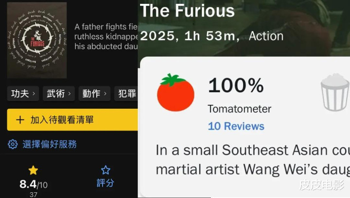 烂番茄直接开分100%新鲜度,IMDb网站上也有8.4分。 也许是欧美观众比较喜欢看凶猛的动作戏,影片被评价故事简单,但动作戏生猛,带着明显的Cult风格。