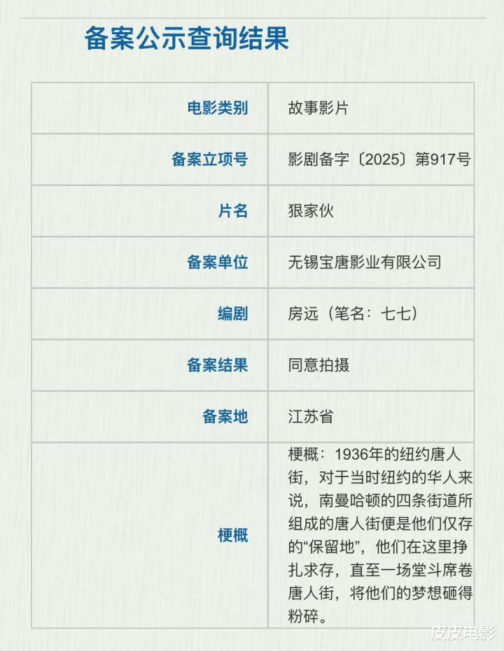 边上的王宝强,明显不想提早揭锅。 但贾樟柯想说,他也不好拦着,只能无奈地陪笑。 那这部王宝强极为重视的新片,到底是什么? 根据电影局公开的备案信息,这部电影应该就是《狠家伙》。
