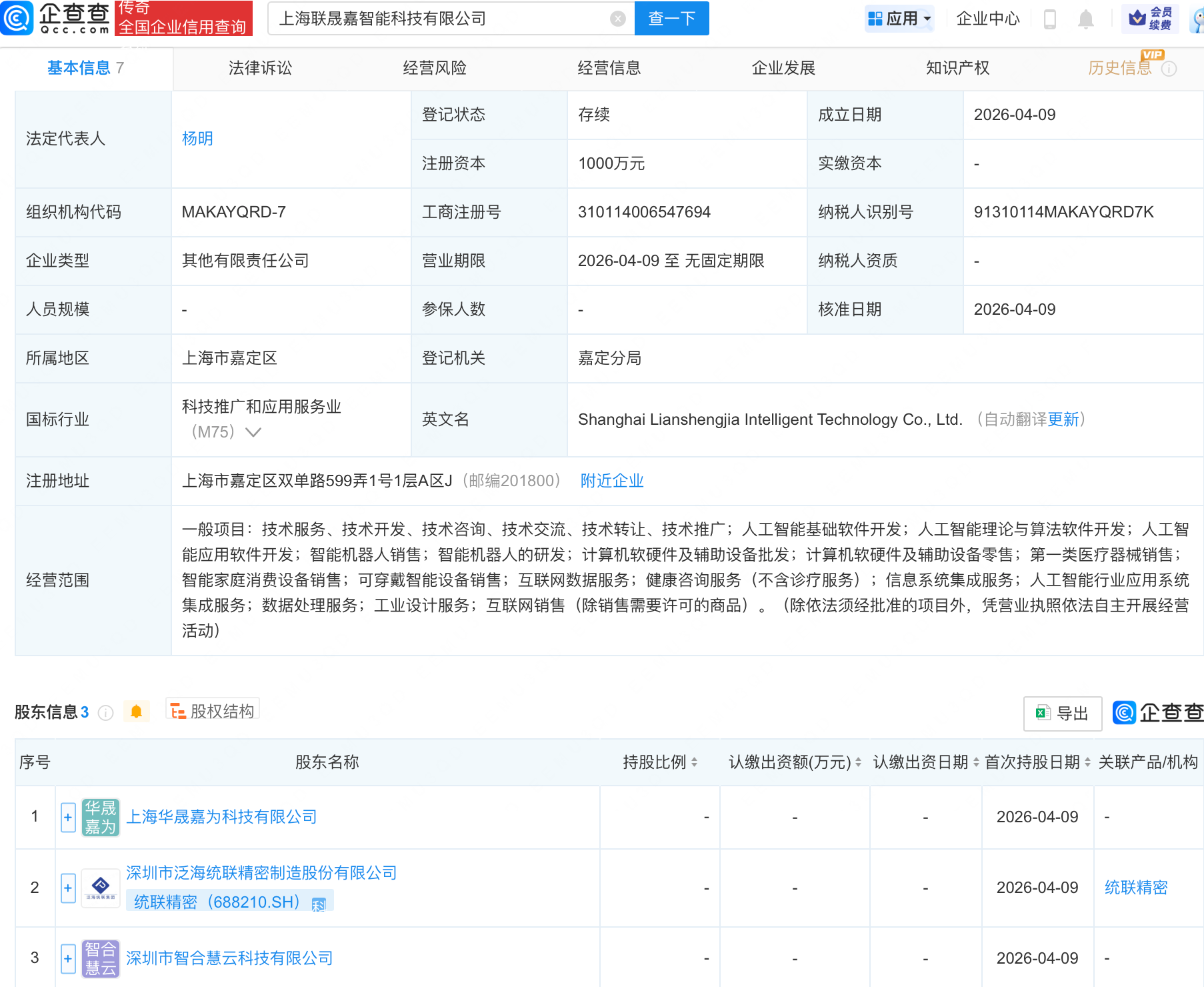 企查查APP显现milan,近日,上海联晟嘉智能科技有限公司建立,米兰体育官方网站注册老本1000万元,标的领域包含:东谈主工智能基础软件迷惑;东谈主工智能表面与算法软件迷惑;东谈主工智能专揽软件迷惑;智能机器东谈主销售;智能机器东谈主的研发等。企查查股权穿透显现,该公司由统联精密(688210)等共同握股。 |