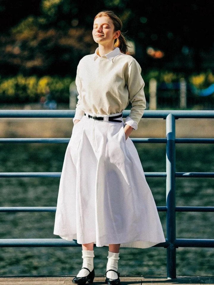 可能会有姐妹问,到底什么样的东说念主顺应采用半裙呐?我不错绝不夸张的说:“总共东说念主齐合适”!顺应春天采用的宽松半裙险些不错包容总共体态,高矮胖瘦姐妹齐能挑到顺应我方的款。 小个子姐妹用宽松半裙搭配短款露脐上衣好像采用塞衣角穿法,不错平直处治体魄比例不合作、腿短的问题。