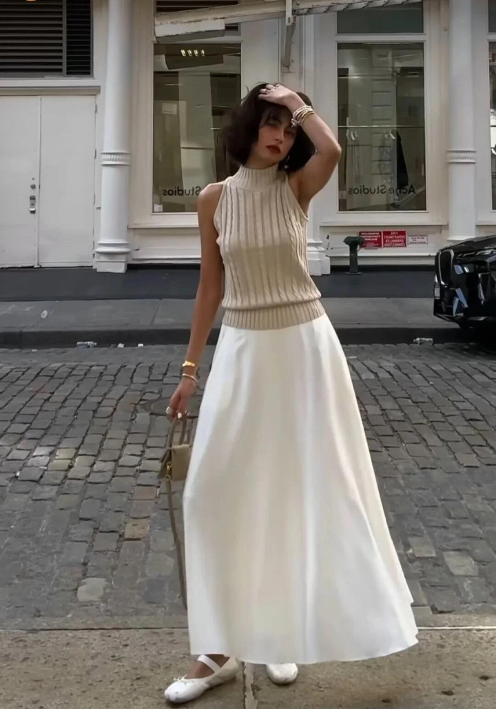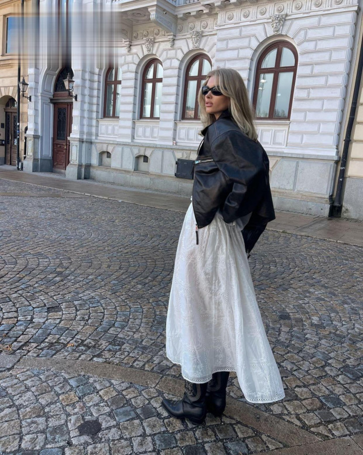 春天宽松半裙有突出出众的百搭才智,采用基础款半裙的姐妹,不错用它和衣橱里任何一款上衣搭配,温度合适的情况下赋闲穿出迷东说念主魔力。 采用流行款半裙的姐妹也不必牵挂,流行款上衣+流行款半裙或基础款上衣+流行款半裙齐能隆起重围,成为娴雅精们的“强敌”,肤白貌好意思体魄好的姐妹照搬照抄博主身上这套造型,确凿无敌!