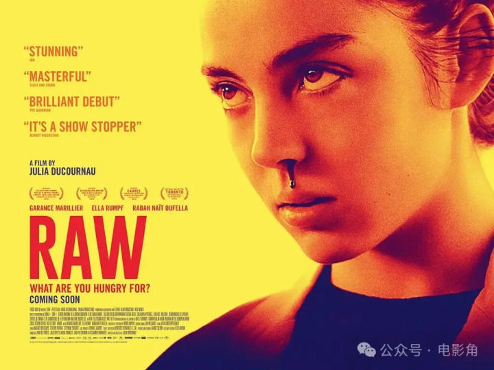4《生吃》(2016) 烂番茄新鲜度93% 剧情简介:坚定的素食主义者贾斯汀(加朗斯・马里利埃饰)进入兽医学校就读的第一周,便闯入了一个颓废放纵、残酷无情且充满危险诱惑的世界。为融入群体,她违背原则首次食用生肉。当真实自我逐渐显露时,这位年轻女子很快遭遇了可怕而意想不到的后果。 影评人共识:《生吃》的血腥暴力与情欲纠葛,完美契合其片名所传递的生猛气质,而沉浸式的影片氛围与深刻的象征意义,令观众在那些冲击性画面褪去后,依旧久久无法释怀。