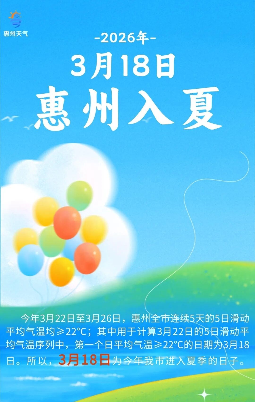 惠州昨天官宣一件大事 惠州已于3月18日 参预表象学景仰景仰上的夏天! 环球是不是烦躁 明明3月18日就入夏了 为什么到27日才通告? 表象景仰景仰的入夏 看的是“滑动平均气温” 不是单天温度